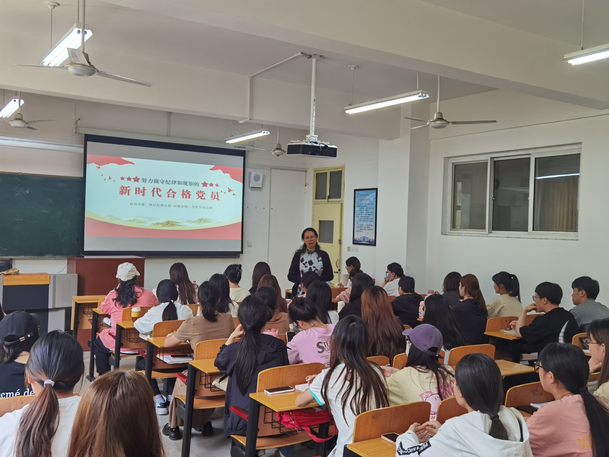 4月28日,公司党委副书记周群英以“努力做守纪律讲规矩的新时代合格党员”为题,为必一运动分党校入党积极分子讲授党课。