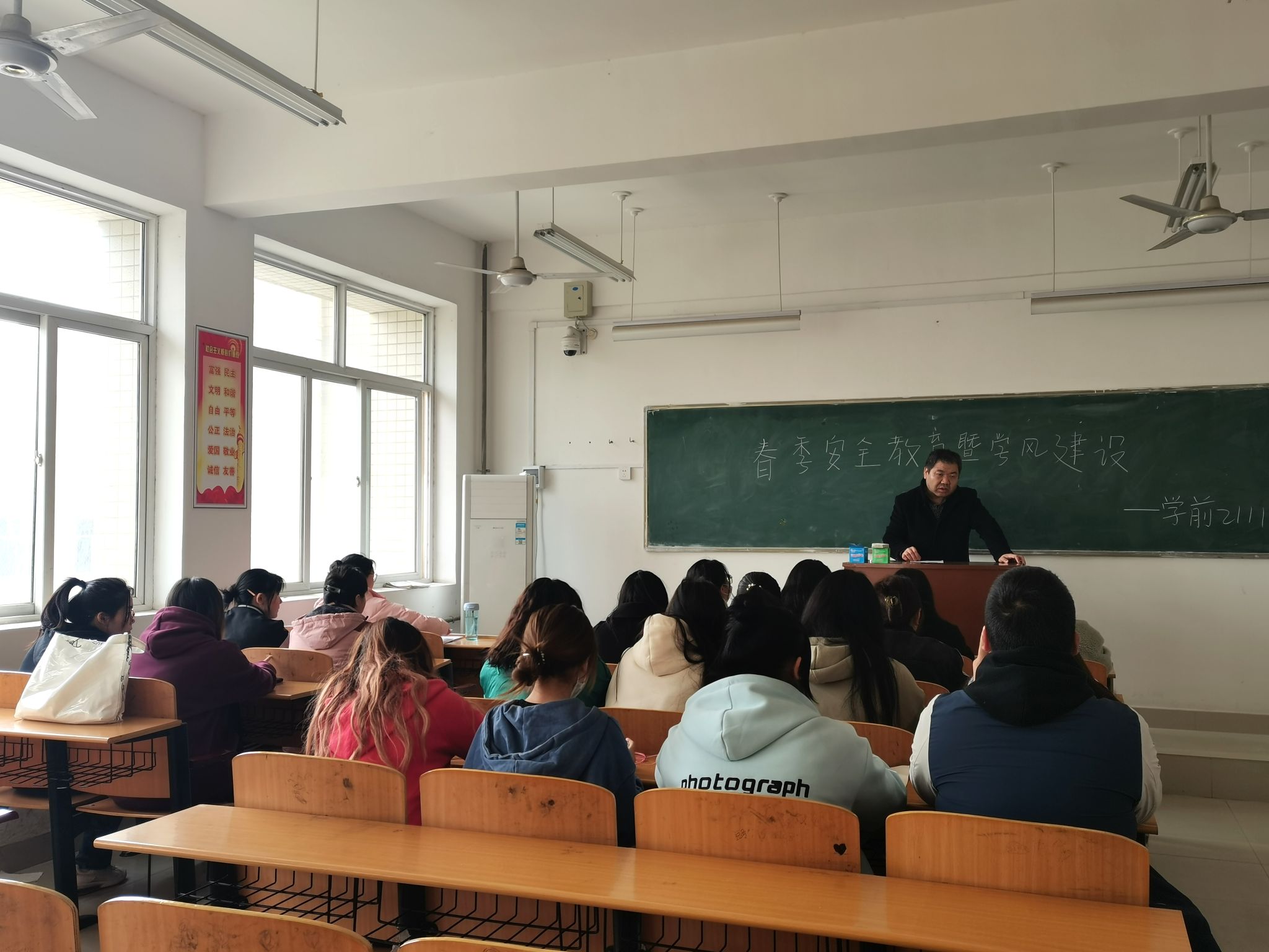 班会上,各位班主任老师从员工思想政治教育、春季防传染病、生命健康教育、心理健康教育、学风建设教育、防诈骗宣传教育、劳动教育等七个方面召开主题班会。针对毕业班,班主任就目前就业形势进行了分析,全面阐述了专升本考试的重要性,重点强调了专升本冲刺复习的方法和技巧,引导员工为专升本复习与就业做好充分准备,希望员工们树立信心,制定计划,扎实复习,积极备考。