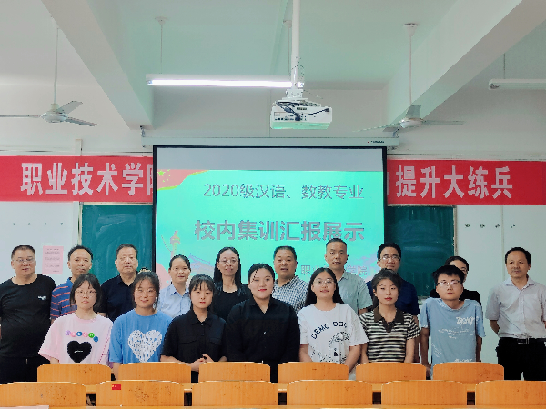 6月14日,按照校内集训方案安排和要求,6月14日,2020级中文、数教专业在一号楼206教室成功举行了校内集训汇报展示活动,活动由师范专业技能训练教研室主任关革妮主持。公司领导、教学管理科及教研室老师莅临现场指导。