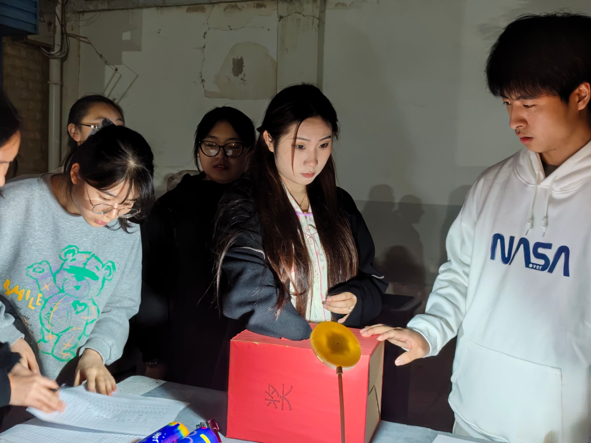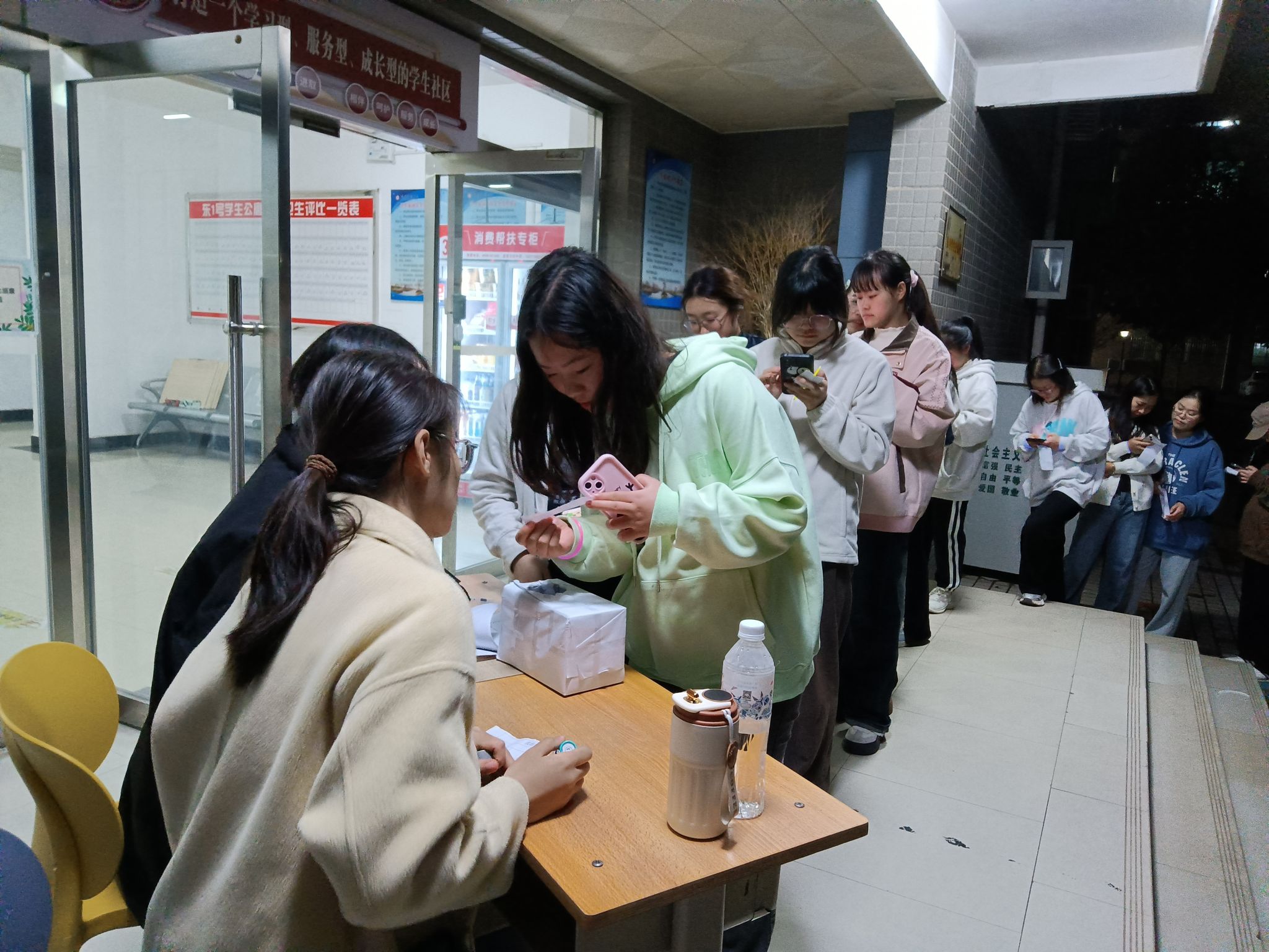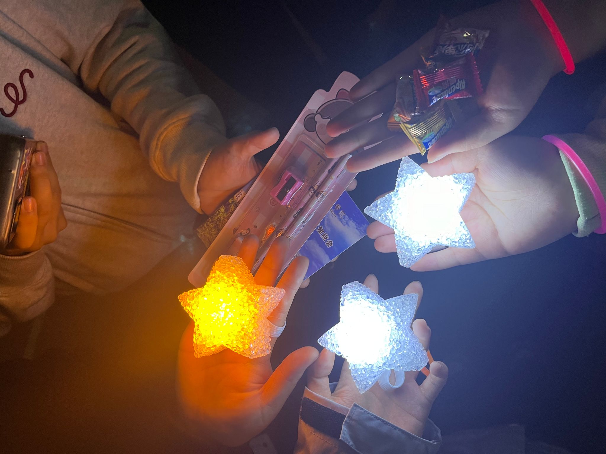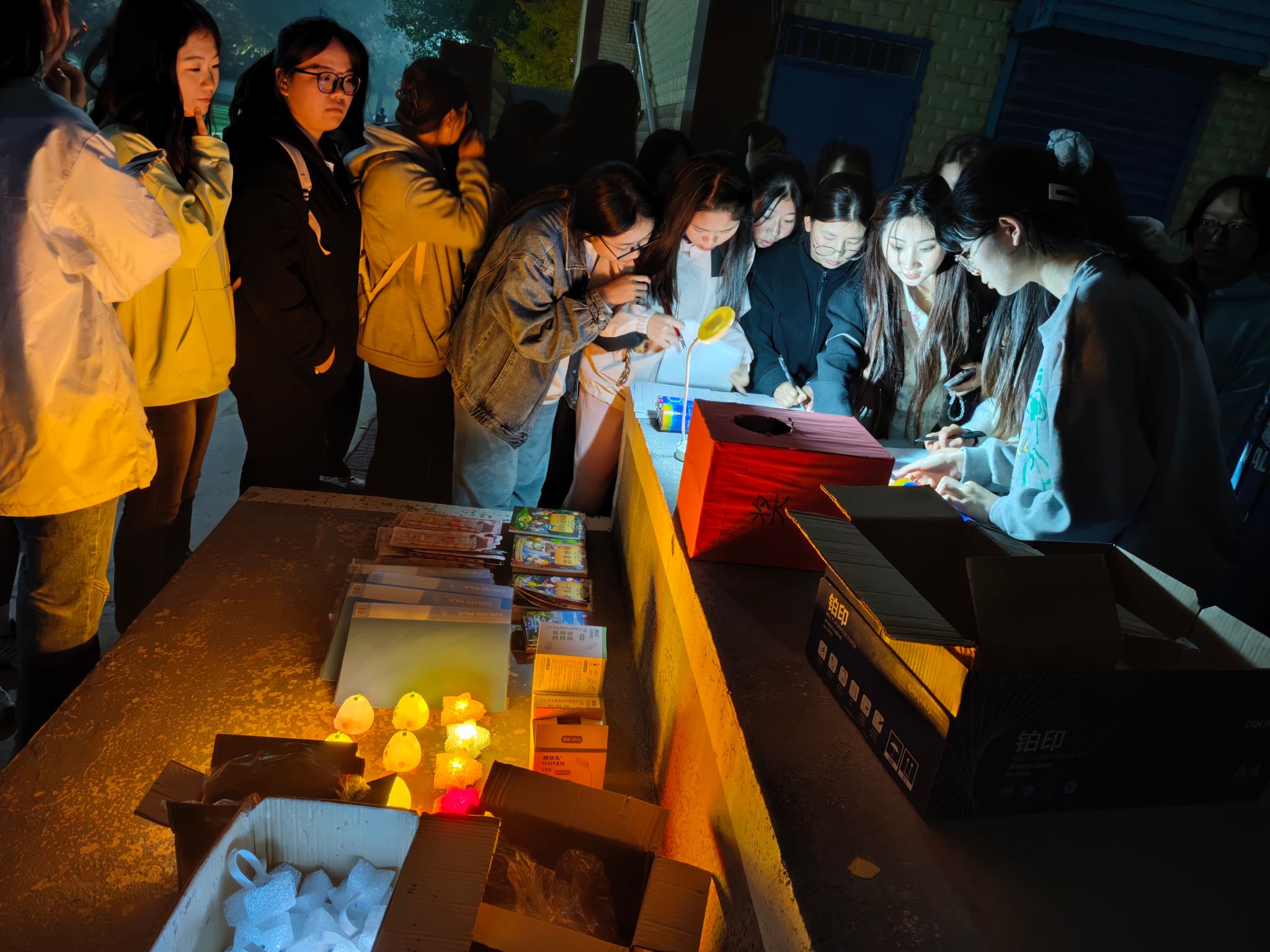本次活动在秦都校区北门、公寓、操场等处设置打卡点位,布置场景。活动开始后,员工手持荧光棒和集章卡,通过知识问答、抽签做指定动作、节目表演等多种形式,收集打卡印章,集齐三个印章,便可获得一次抽奖机会,通过抽奖获得相应奖品。