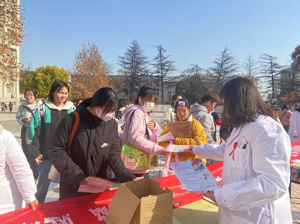 活动开始,校医院医护人员给参与此活动的各位领导、老师以及员工佩戴红绸带,并带领大家认真学习了宣传单页上的内容,她们向大家详细介绍了关于艾滋病的基本知识,宣传如何预防艾滋病的相关措施,倡议大家增强自我保护意识。接着,赵星书记表示所有员工要认真学习防艾知识,积极践行防艾措施,并带头在防艾宣传横幅上进行签名。最后,领导与参加本次防艾宣传活动的人员在横幅前进行合影。