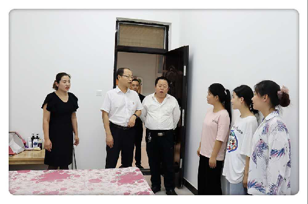 董主任一行对全体实习生的日常生活和住宿条件等进行了细致检查和深入了解,与漠西中心幼儿园的各位老师和实习生进行了座谈,为实习生们送上了节日的祝福与礼物,并通过漠西幼儿园实习生们代向在乾县实习的公司95名同学致以节日问候。