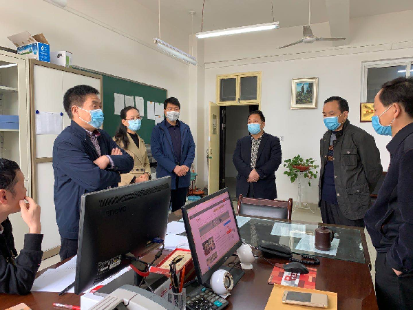 公司党政领导一行先在教学管理科详细了解了教师线上教学的情况及近期教学存在的问题;深入员工工作办公室详细了解员工分批次返校的各项准备情况,强调工作要进一步细化,责任到人;深入到各实验室检查了各实验室设备、消毒等方面的情况。经理赵增新听取了各科室负责人工作汇报,并要求:继续加强监督检查线上教学各项工作,确保开学后线上、线下教学衔接工作,按国家疫情防控要求做好开学后的复课准备工作;要配合学校疫情防控要求,加强开学后外聘教师的管理工作,要在开学前完成外聘教师信息卡制作工作,保质保量完成近期教学管理相关工作;要切实做好员工分批次返校前各项准备工作,细化工作任务,责任落实到人,确保员工平安返校和返校后日常生活、学习规范有序;实验室要做好开学前设备的检查、调试和维护工作,配合做好每天全面消毒工作。