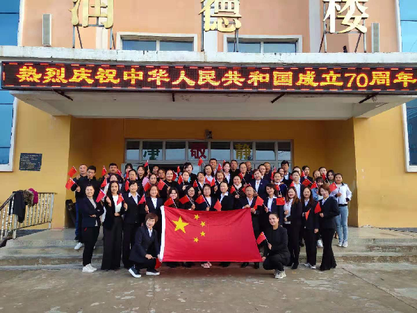上午八点三十分,实习生所在学校举行了升旗仪式。随着雄壮的国歌声响起,鲜红的国旗徐徐上升,回想祖国70年来翻天覆地的变化和取得的举世瞩目的成就,我们内心的自豪感油然而生。上午十时,实习生在支教学校的组织下,集体收看庆祝中华人民共和国成立70周年大会实况直播,学校举行了国庆70周年汇报表演,用方阵表演与歌声表达着对祖国的深深祝福。
