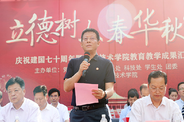 公司党委书记赵万东宣布“立德树人 春华秋实”庆祝建国七十周年暨必一运动公司产品成果汇报展开幕!