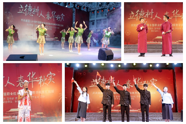 晚上,学校领导观看了由党政办、宣传部、教务处、员工处、团委主办,必一运动、音乐公司承办的公司产品艺术展演,舞蹈《盛世欢歌》、陕北民歌大联唱、合唱《强国一代有我在》《我和我的祖国》等文艺节目精彩纷呈,展示了职教学子的风采,传播了职业教育正能量,现场气氛高潮迭起,迎来阵阵掌声。