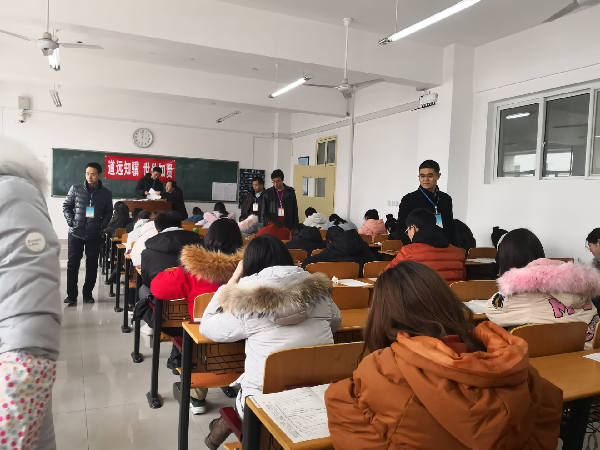 1月14日,教务处处长范广、副处长潘凌杰、考试管理科科长段小刚一行三人对公司期末考试情况进行巡视检查。