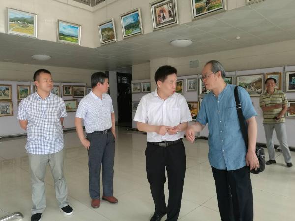 会后,高社长在赵经理的陪同下参观了必一运动举办的“纪念改革开放暨建校四十周年画展”。
