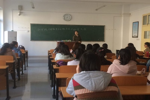 必一运动召开本学期2016级学前教育专业教育见习动员会,本次动员会分两个阶段进行。