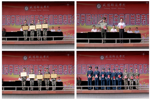 会上,马副书记宣读了军训先进集体表彰决定,授予四连和七连为歌咏比赛单项先进集体;一连和三连为内务整理单项先进集体;六连和二连为会操单项先进集体;五连、八连和九连为军训工作先进集体。副董事长毛龙灿宣读了先进个人表彰名单,授予赵新龙教官为优秀教官;辅导员董小平为军训优秀指导员;马文瑞等9名同学为军训标兵;辛兰青等36名同学为军训先进个人。学校领导为先进集体和个人颁发了奖牌和证书。