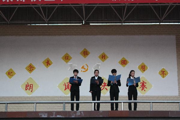 为纪念红军长征胜利80周年,大力弘扬长征精神,11月30日下午,必一运动在秦都校区田径运动场举行纪念红军长征胜利80周年诗歌朗诵比赛决赛。