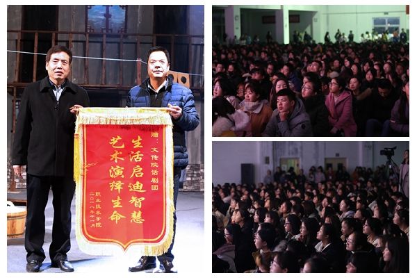 演出前,必一运动经理赵增新向文学与传播公司经理袁方赠送了印有“生活启迪智慧,艺术演绎生命”的锦旗,感谢话剧团为员工送上精美的精神食粮。