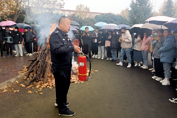 首先,保卫处工作人员详细讲解了消防器材分类及使用方法以及发生火灾时如何自救等消防知识。在接下来的消防演练活动中同学们分组进行灭火模拟演练,通过实际操作切实引导和帮助同学掌握消防安全知识,提升消防安全防范能力。