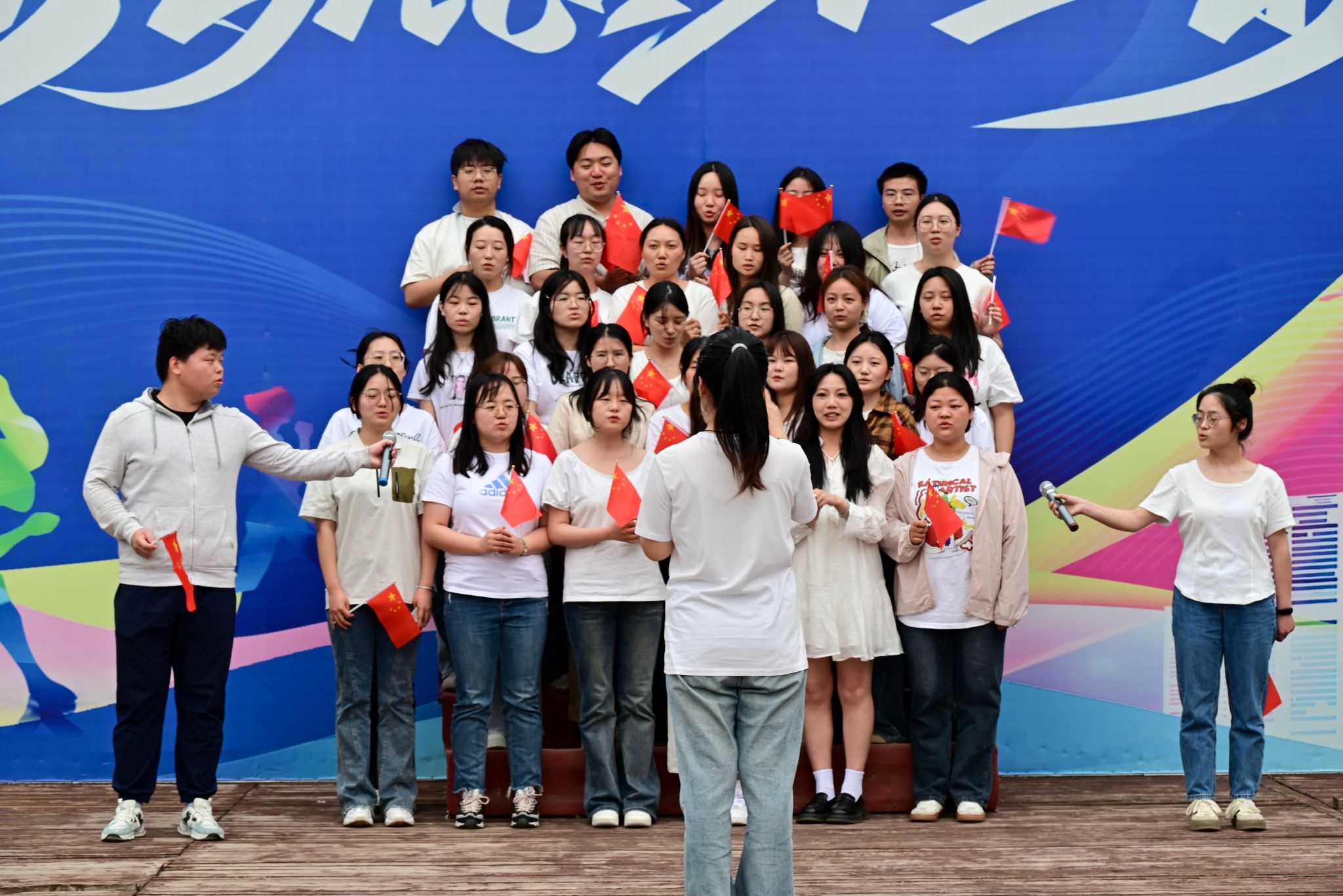 最后,由获得活力团支部优秀称号的汉语2322班带来大合唱《我和我的祖国》。