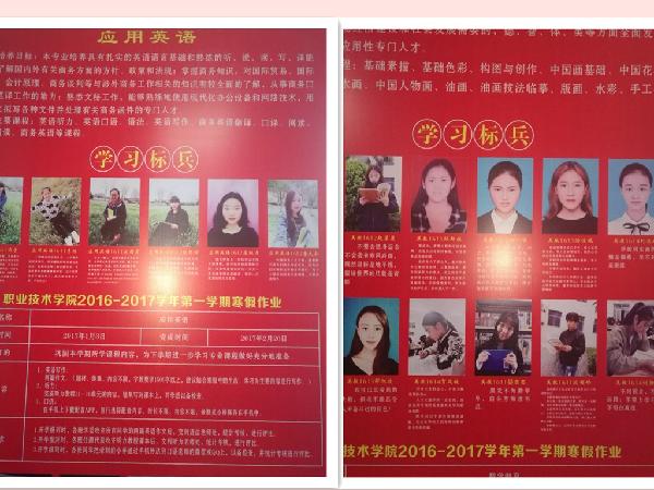 为指导员工在愉快的假期中坚持学习,在社会实践和思考中成长、提高,巩固第一课堂所学,切实做到假期教学不断线,课内课外相衔接,使员工强化在校所学,为员工进一步成长发展打下良好基础,公司在放假前为各专业员工布置了寒假作业,内容包含专业课程、社会调查、学业规划等。 员工在假期认真完成作业,开学后共收集寒假作业1800余份。教学办组织相关老师辛勤批阅后,评鉴出优秀作业80余份,和评选出的59名学习标兵风采在教学楼大厅进行了展出。通过本次展览旨在树立典型,激励先进,增强看齐意识,营造优良学习氛围,培育良好的学习风气,创建秦都校区优良校风。